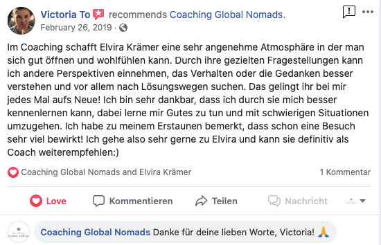 I am Elvira Krämer, a so called Global Nomad.I was born in Abu Dhabi, UAE and was partly raised in the Middle East and Switzerland by a Ukrainian mum and a Swiss dad.It is no surprise that my socialization led to my passion for travel, hence curiosity for different cultures, human behavior and Psychology.Thus, I have a MA in Sociology and Media Sciences with work experience abroad in International Development.Furthermore, I am a certified NLP (NLP-Master IANLP) and emTrace® Coach (integrative emotion coaching).